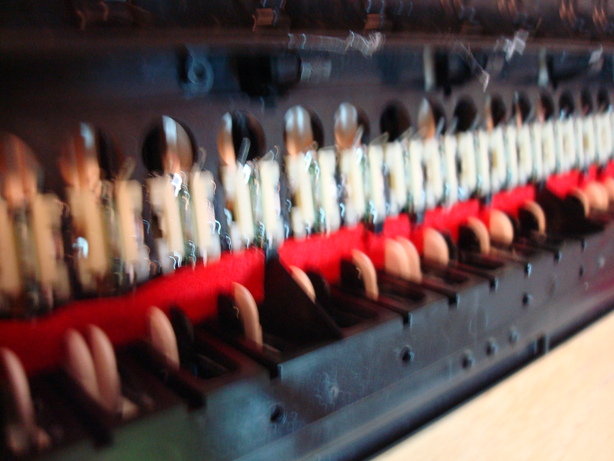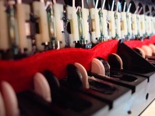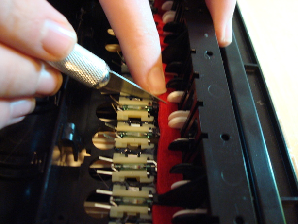 | The first octave or so of reed switches on the bottom of the keyboard tray |