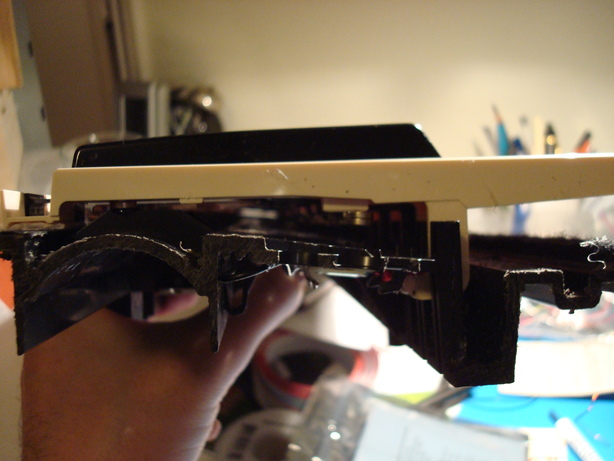 | The end of the resistor chain and ground wire routed through underside of keyboard |